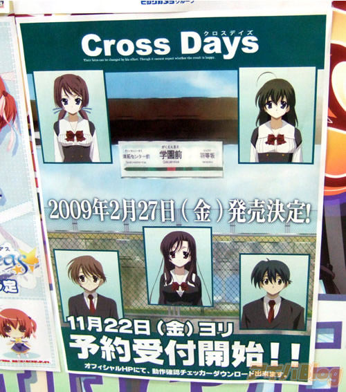 『CrossDays(クロスデイズ)』は、テックジャイアンの記事によると『スクールデイズとクロスオーバーするフルアニメーションADV』。ドリパ大阪の発表?では『主人公は、伊東誠ではない』・『時間軸は、School Daysと同じ』・『人が死ぬ』とかだったみたいで、暇つぶし日記みたいなものさんでもドリパでのCross days情報を書かれている。